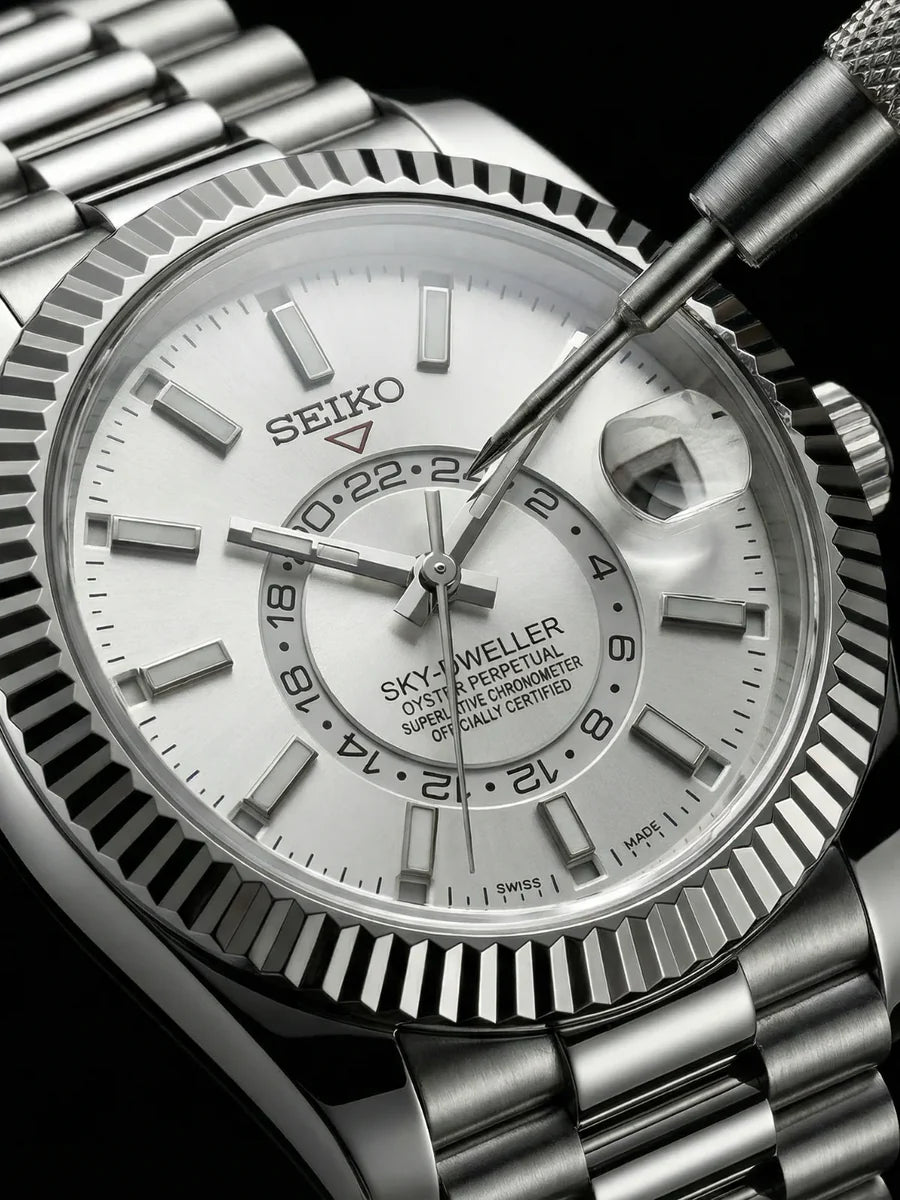 A Seiko Mod is a special watch hand-assembled from a prestigious Seiko automatic or hybrid movement, combined with high-quality aftermarket parts, usually made of 904L stainless steel.